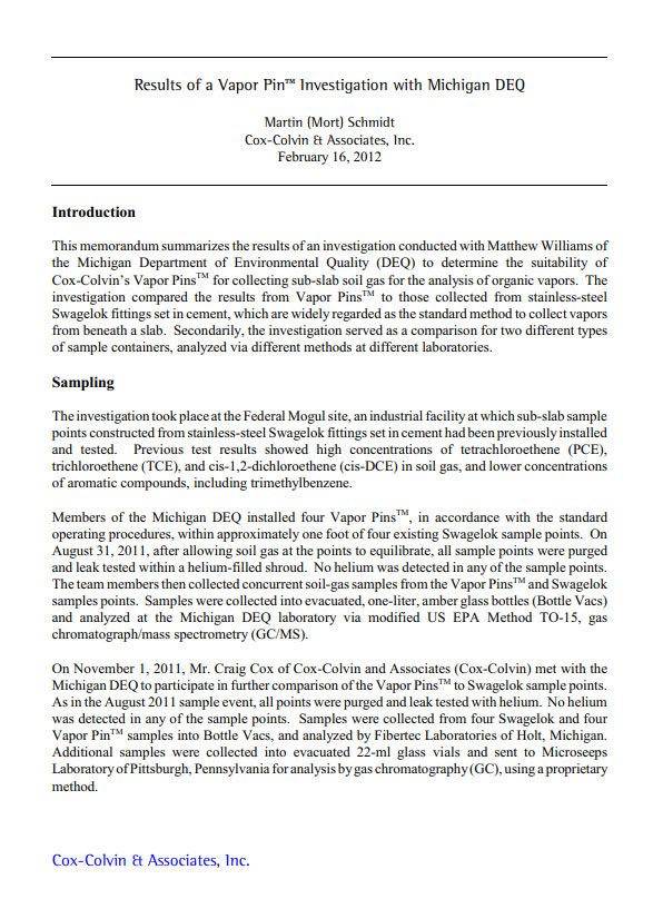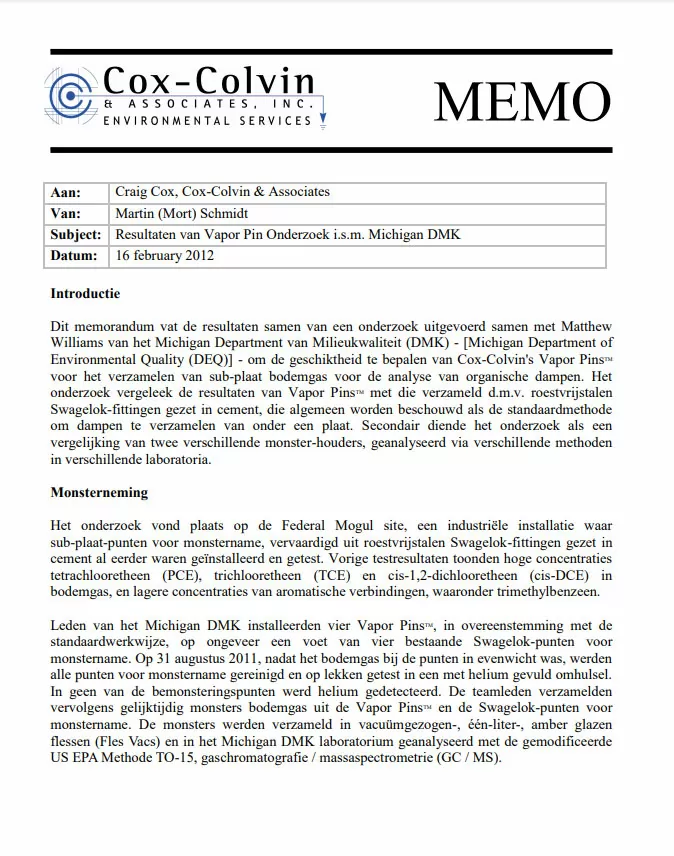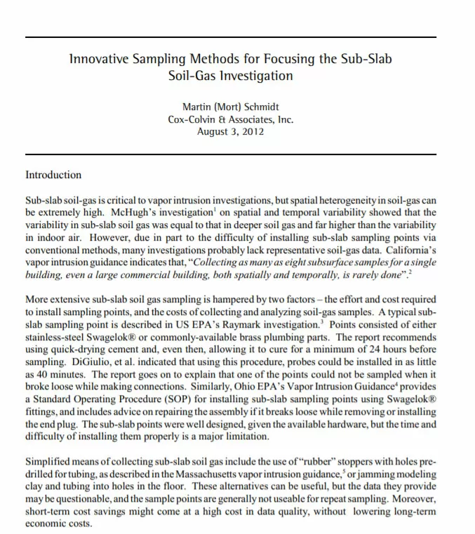 Consulte nossa ampla lista de recursos sobre investigações de intrusão de vapores, testes de pressão e mitigação, caracterização da fonte de contaminação e monitoramento da evolução da mitigação e testes de pressão