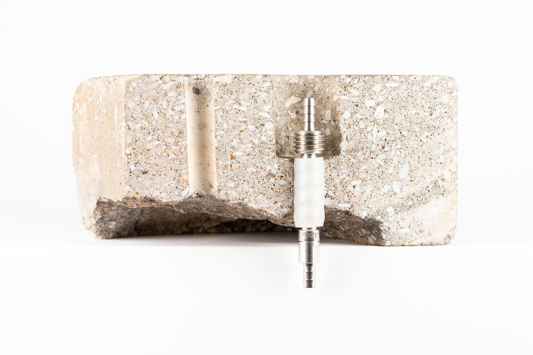 A Extensão Barb é uma espiga versátil utilizada para encaixar embaixo do Dispositivo de amostragem VAPOR PIN®. Usada para conectar outros dispositivos tais como (tubos de aço inoxidável, plástico rígido, e filtros).